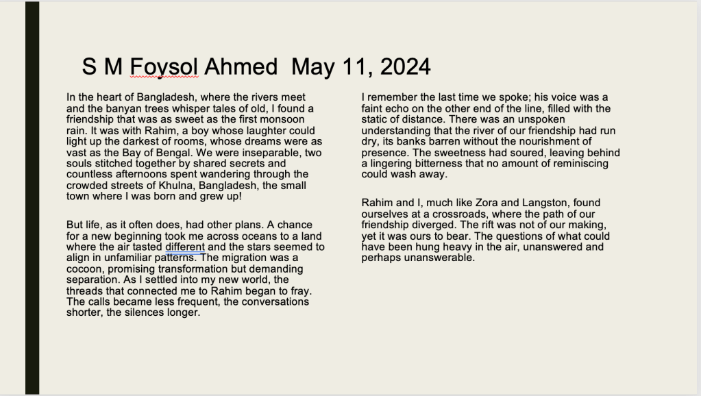 Community Empathy Write: Friendship and Social Mobility Posted byhsloaneutolSeptember 8, 2024September 14, 2024Posted inUncategorized Zora Neale Hurston and Langston Hughes Share this: Share on X (Opens in new window) X Share on Facebook (Opens in new window) Facebook Like Loading... Related
